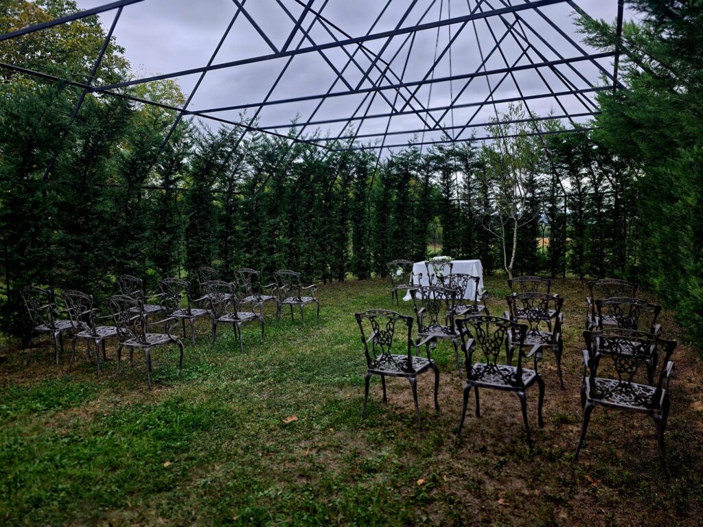 Vasárnap a Pellérdi Élménybirtok különleges hangulatába csöppentünk, ahol a szerelem, az elegancia és a kreatív esküvői megoldások találkoztak. Az erdő ölelésében megbúvó dombtető már érkezéskor magával ragadott: a friss levegő, a természet illata és a vendégszerető fogadtatás egy csapásra megteremtette az otthonos érzést. A birtok minden apró részlete a nyugalmat és a meghittséget sugározza. A szertartás helyszínéhez egy árnyas ösvény vezet, amelyen végigsétálva már előre érezni lehet a nagy nap izgalmát. A központi térségben álló tágas, rusztikus pajta ideális választás intimebb esküvők számára. Minden részlet azt sugallja, hogy itt a párok és vendégeik nem csupán egy eseményen vesznek részt, hanem egy valódi élményben.